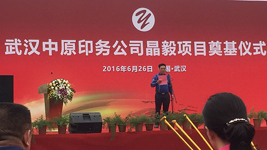 10:00整奠基儀式隆重開始,首先由武漢中原印務公司董事長致開幕詞,對東西湖區(qū)各位領導及相關的領導蒞臨現(xiàn)場表示最熱烈的歡迎和最衷心的感謝!
