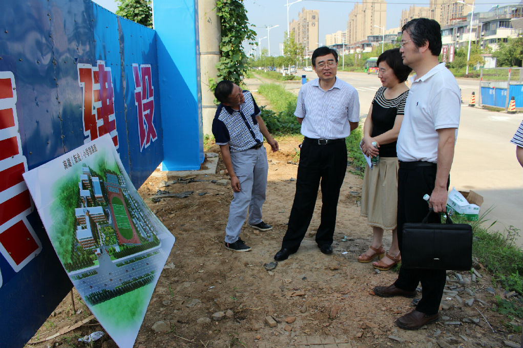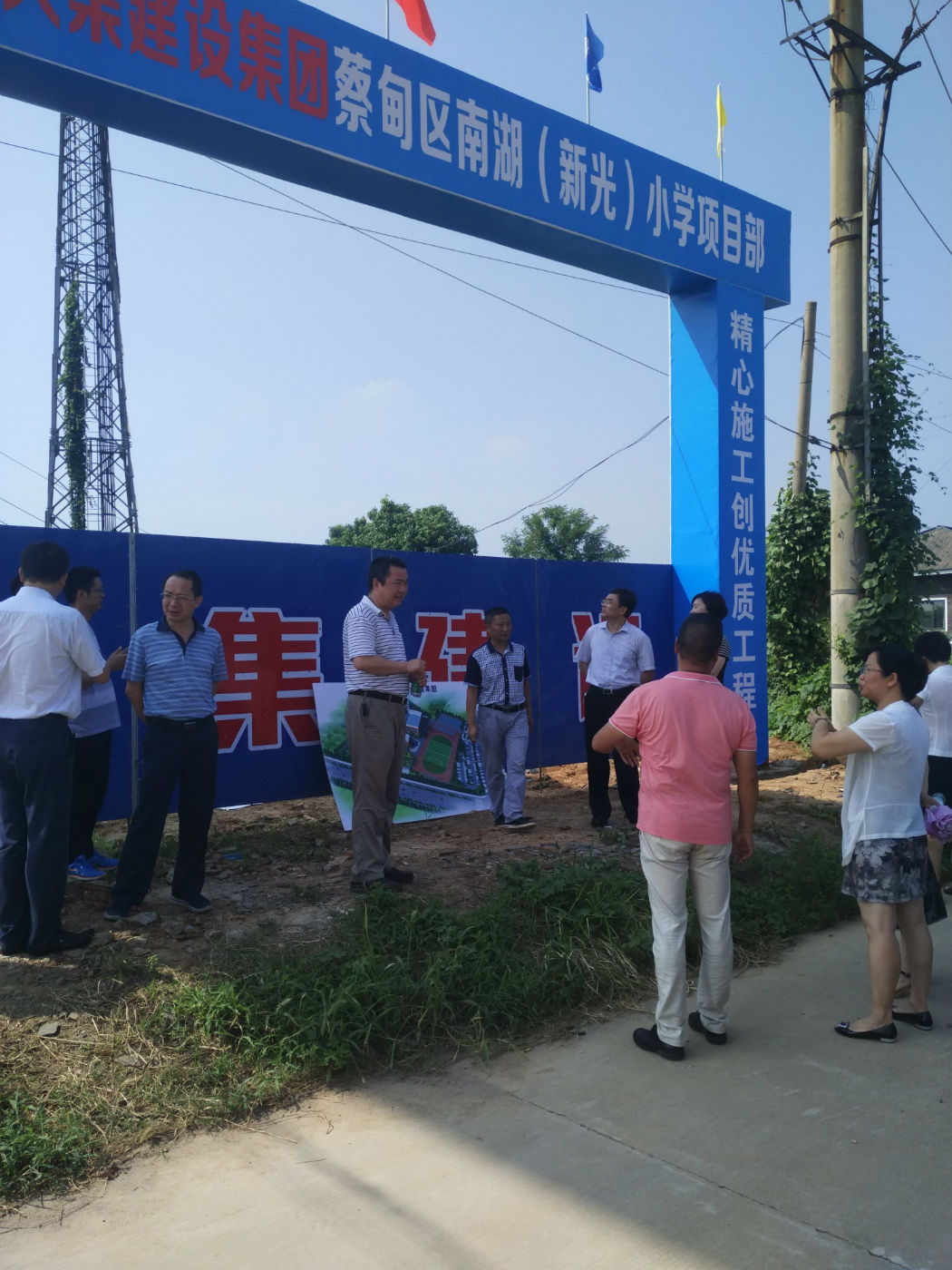 2016年8月12日,上午9:30武漢市教育局主要領(lǐng)導(dǎo)一行8人來到蔡甸區(qū)天鵝湖大道,考察了南湖(新光)小學(xué)建設(shè)情況。區(qū)教育局領(lǐng)導(dǎo),集團公司徐副總及工程部負(fù)責(zé)人一起陪同。