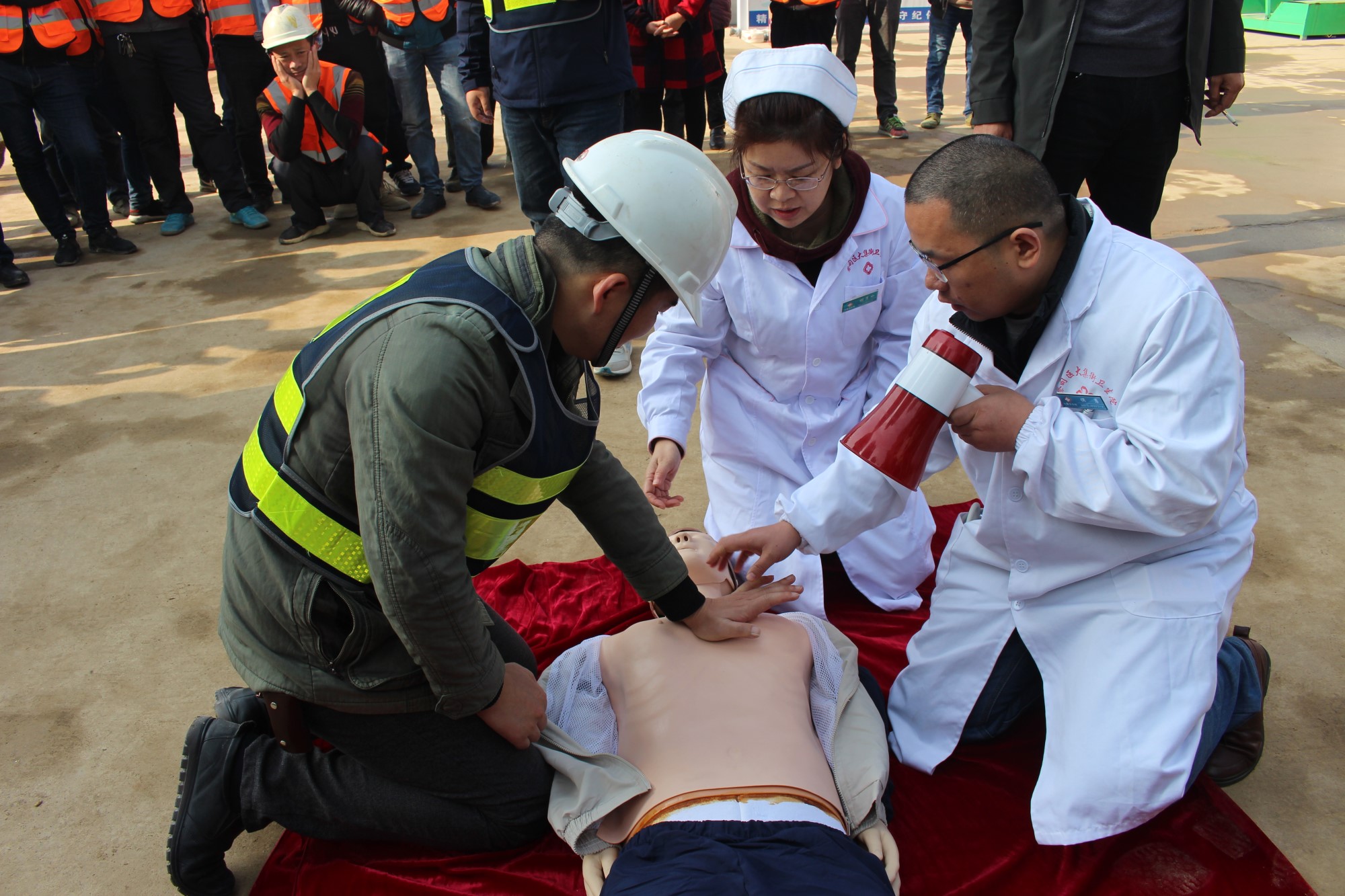 本次演習(xí)的第一個(gè)項(xiàng)目是心肺復(fù)蘇,由蔡甸區(qū)大集街衛(wèi)生院為現(xiàn)場參與人員講解,衛(wèi)生院醫(yī)生借助假人模型,生動(dòng)形象地為大家講解了如何在現(xiàn)場進(jìn)行心肺復(fù)蘇,強(qiáng)調(diào)了心肺復(fù)蘇的方法及要點(diǎn)。大家興趣濃厚,聽得認(rèn)真,看得仔細(xì),將 “心肺復(fù)蘇”要領(lǐng)熟記于心。講解結(jié)束后,衛(wèi)生院醫(yī)護(hù)人員還手把手指導(dǎo)大家進(jìn)行實(shí)際操作,糾正錯(cuò)誤的操作,并給予說明、講解和正確的示范。