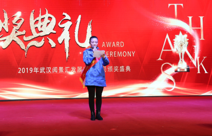 武漢花博匯總經(jīng)理助理卿尚波、運(yùn)營(yíng)總監(jiān)黃艷為優(yōu)秀員工頒獎(jiǎng)