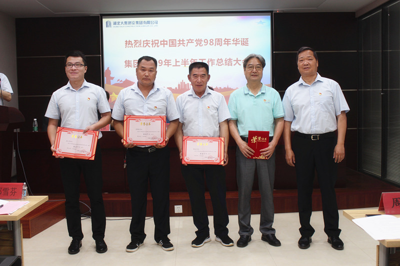集團(tuán)黨委委員徐家富同志為“黨員先鋒崗先進(jìn)個(gè)人”梁前樹同志、萬啟必同志、彭輝同志、許纓同志頒發(fā)榮譽(yù)證書,大集街工委副書記吳浩為“先進(jìn)黨支部”——房地產(chǎn)開發(fā)黨支部頒獎(jiǎng)。