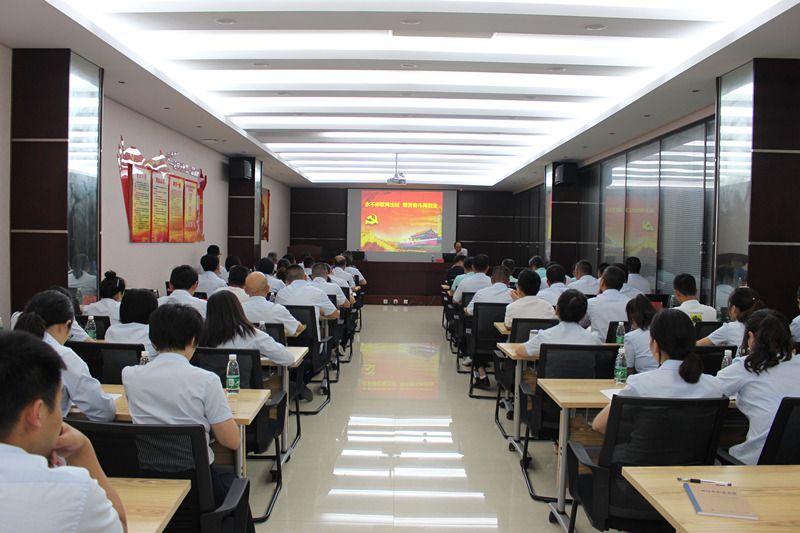 下午14:00,集團(tuán)特別邀請蔡甸區(qū)黨校教授張啟華為公司全體黨員開展以“永不停歇再出征 艱苦奮斗再創(chuàng)業(yè)”為主題的黨課學(xué)習(xí)活動(dòng)。此次黨課由集團(tuán)黨委書記、董事長徐濤同志主持,集團(tuán)公司全體黨員、項(xiàng)目經(jīng)理及辦公人員共計(jì)60余人參加。