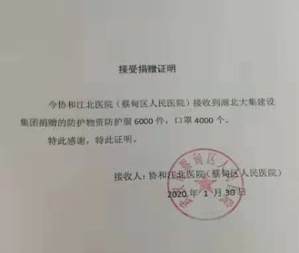 隨后又向蔡甸區(qū)人民醫(yī)院定向捐贈(zèng)防護(hù)服6000件,N95口罩4000個(gè),支援一線定點(diǎn)醫(yī)院,物資累計(jì)價(jià)值50萬元。