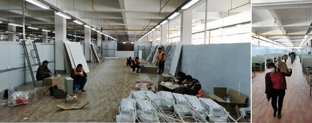 2月15日一早,在接到承建方艙醫(yī)院的緊急任務(wù)后,董事長(zhǎng)徐濤火急召集全體項(xiàng)目經(jīng)理部署改建工作,進(jìn)行現(xiàn)場(chǎng)勘測(cè)。由于本次任務(wù)很重,改造現(xiàn)場(chǎng)主要集中在3-5樓,包括護(hù)士站及病房共計(jì)12000多平,1600個(gè)床位,以及隔斷墻、廁所及配套設(shè)施。