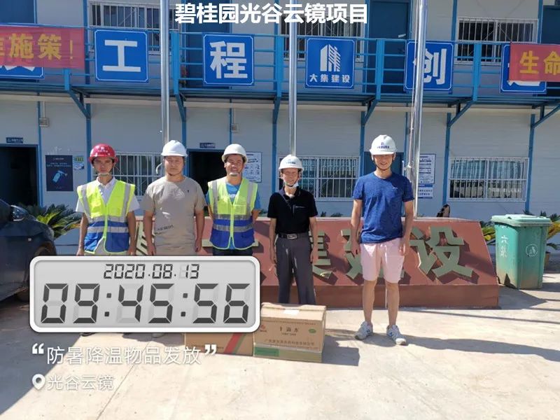 大集G區(qū)蓮溪花園項(xiàng)目、大集街農(nóng)村污水治理項(xiàng)目、大集景綠網(wǎng)紅特色小鎮(zhèn)項(xiàng)目、世茂龍灣47#號(hào)地塊別墅樓工程、黃星大道加油站項(xiàng)目、年產(chǎn)80萬(wàn)套總成項(xiàng)目、常貴路西延伸段項(xiàng)目、泰禾君悅花園項(xiàng)目、碧桂園光谷云鏡項(xiàng)目……每到一處,集團(tuán)工程部都會(huì)將購(gòu)買好的毛巾、風(fēng)油精、人丹、十滴水、藿香正氣水、蚊不叮等防暑降溫物資送到項(xiàng)目人員手中,并要求各項(xiàng)目部一定要把施工人員的身體健康放在首位,要在全力以赴抓質(zhì)量、搶進(jìn)度、創(chuàng)佳績(jī)的同時(shí),嚴(yán)格按照國(guó)家有關(guān)規(guī)定,把防暑降溫工作落實(shí)好、做到位,要根據(jù)天氣氣溫的變化,合理安排工作時(shí)間,作好安全預(yù)防措施、備足防暑降溫物質(zhì),讓員工們安全度過高溫天氣。