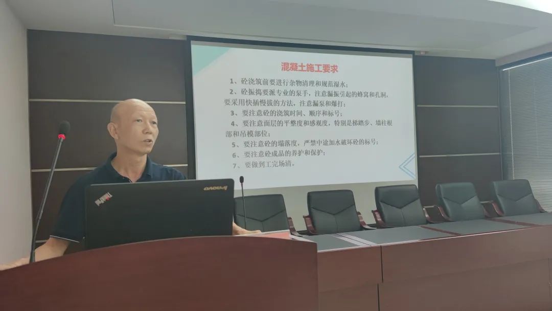 會議開始,工程部質(zhì)量主管王均家發(fā)言,他提出搶進度、增產(chǎn)值的同時一定要抓好質(zhì)量,在保證質(zhì)量的前提下沖刺產(chǎn)值目標,并在質(zhì)量管理上從鋼筋施工、模板施工、混凝土施工、磚砌體及二次結(jié)構(gòu)施工 、墻體粉刷施工、防水施工等六個方面方面提出了嚴格要求。
