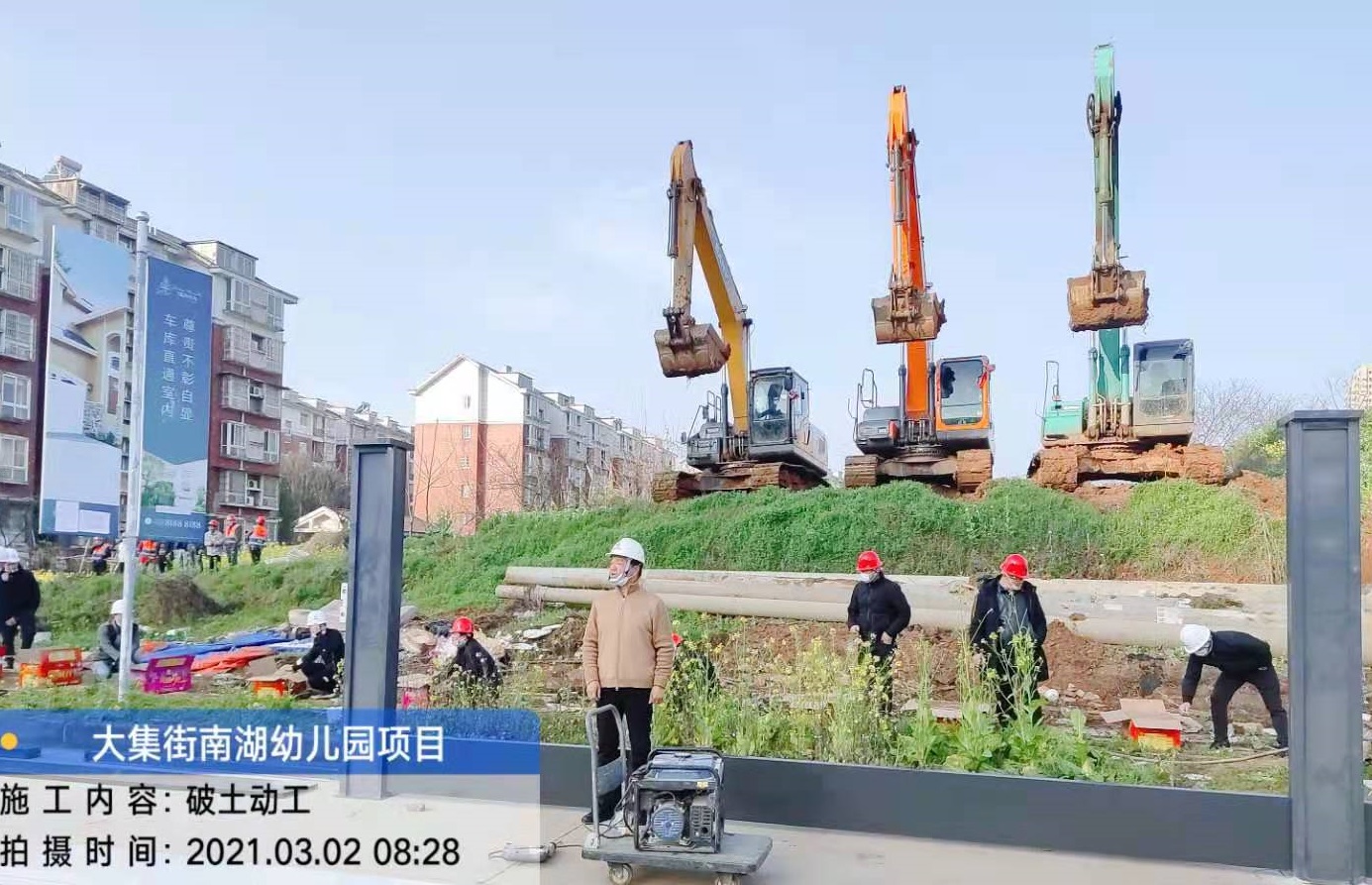 3月2日上午,伴隨著震耳欲聾的鞭炮聲,集團副總經(jīng)理徐家富宣布破土動工,三輛挖機同時開槽破土,由集團公司承建的南湖幼兒園項目工程正式開工建設!