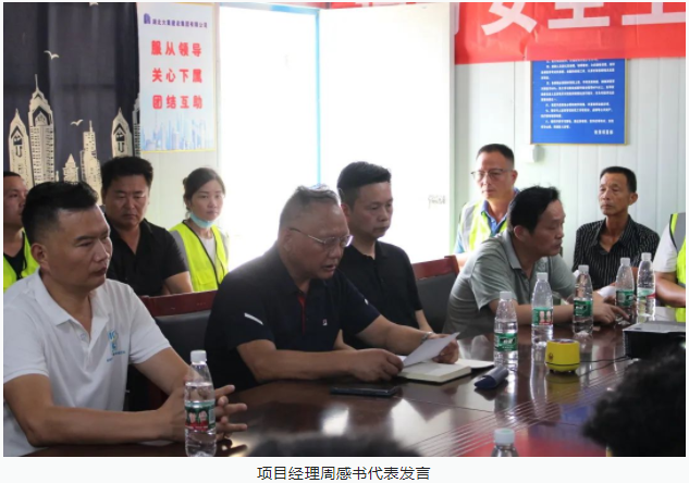 世茂48#地塊項目經(jīng)理周感書代表發(fā)言。周總首先介紹了項目的基本情況,隨后詳細分享了世茂48#地塊項目自開工以來在安全管理方面的經(jīng)驗及措施,并表示在項目管理中,安全和質(zhì)量必須放在第一順位,沒有安全和質(zhì)量,速度和效益都是白談。