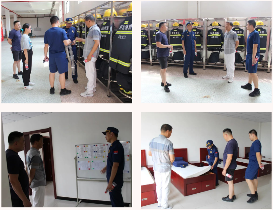 大集消防救援站教導(dǎo)員盧志帶著大家參觀了消防裝備庫及消防官兵備勤室,參觀中,集團(tuán)公司副總經(jīng)理徐家富與盧教導(dǎo)員進(jìn)行了深入交流,詢問官兵們的日常生活及工作情況,并向高溫下堅持訓(xùn)練、持續(xù)工作的他們表示敬意。
