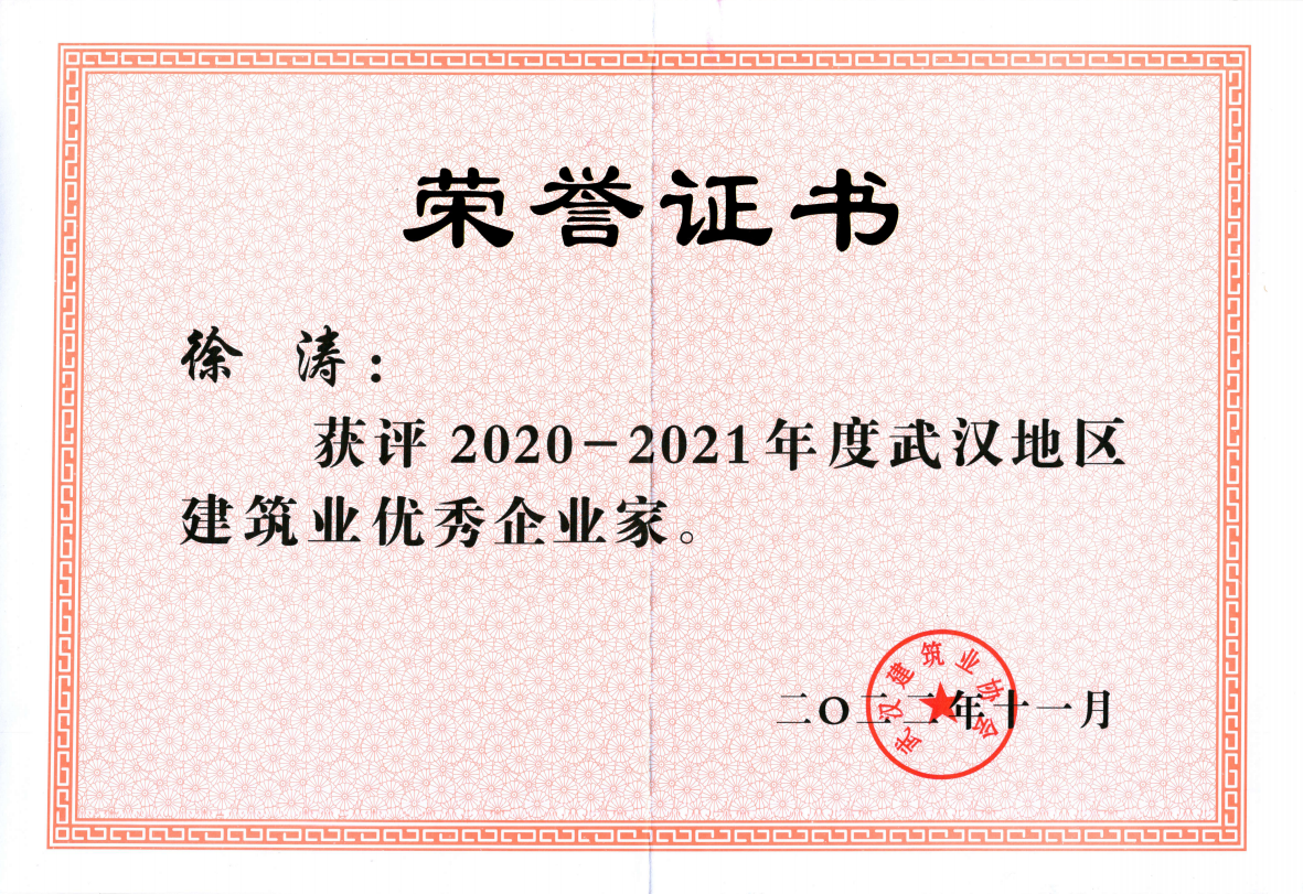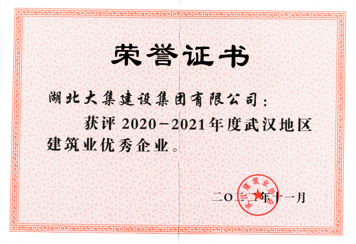 近日,武漢建筑業(yè)協(xié)會發(fā)布2020-2021年度武漢地區(qū)建筑業(yè)“四優(yōu)”選樹結(jié)果。湖北大集建設(shè)集團憑借優(yōu)秀的綜合實力和扎實的管理水平,公司獲評“武漢地區(qū)建筑業(yè)優(yōu)秀企業(yè)”榮譽,公司董事長徐濤榮獲“武漢地區(qū)建筑業(yè)優(yōu)秀企業(yè)家”稱號。