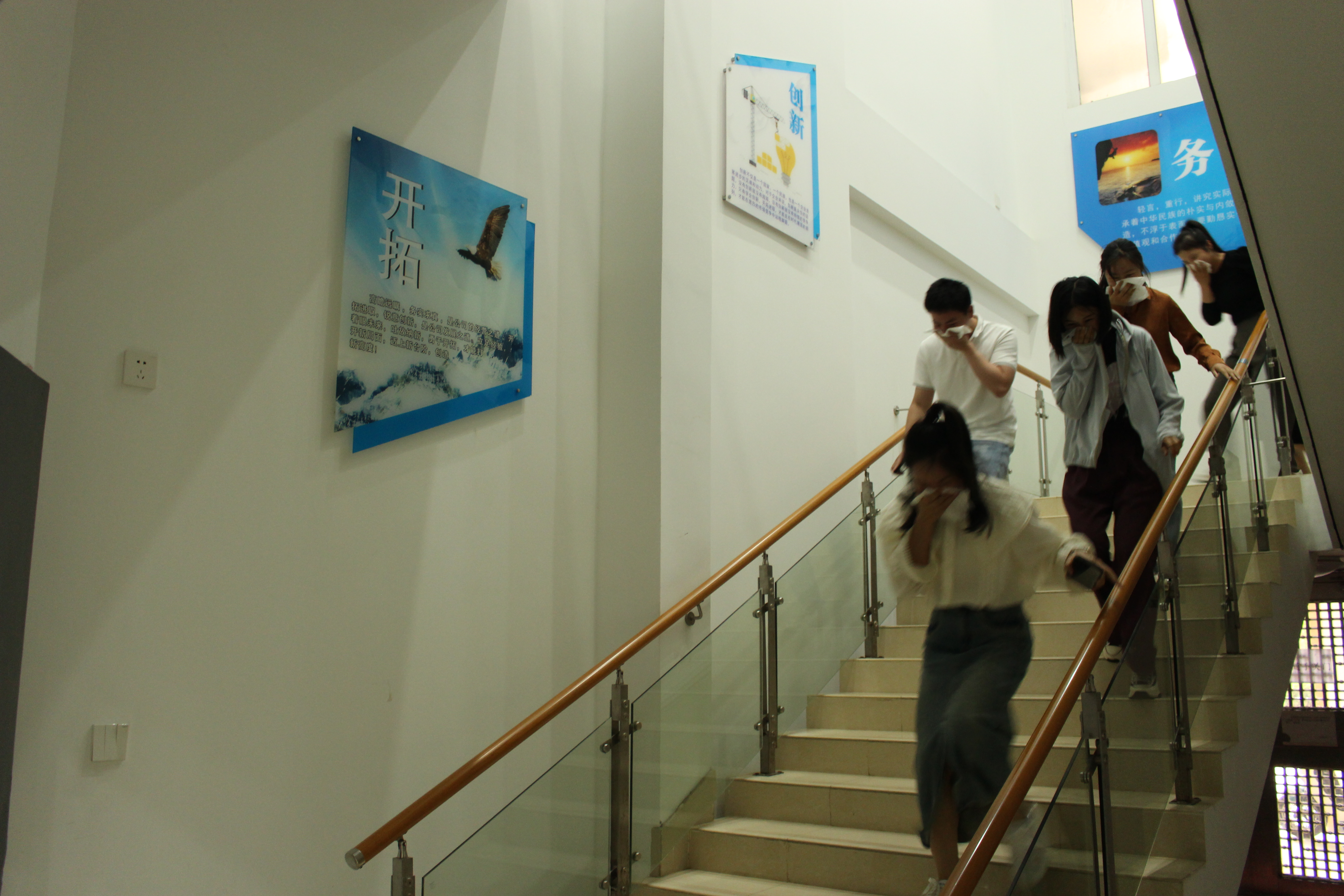 在火災(zāi)發(fā)生逃生演習(xí)中,隨著一聲“著火了”,全體人員用毛巾捂住口鼻、彎腰前行,按照逃生路線有序撤離,安全抵達指定緊急集合點。