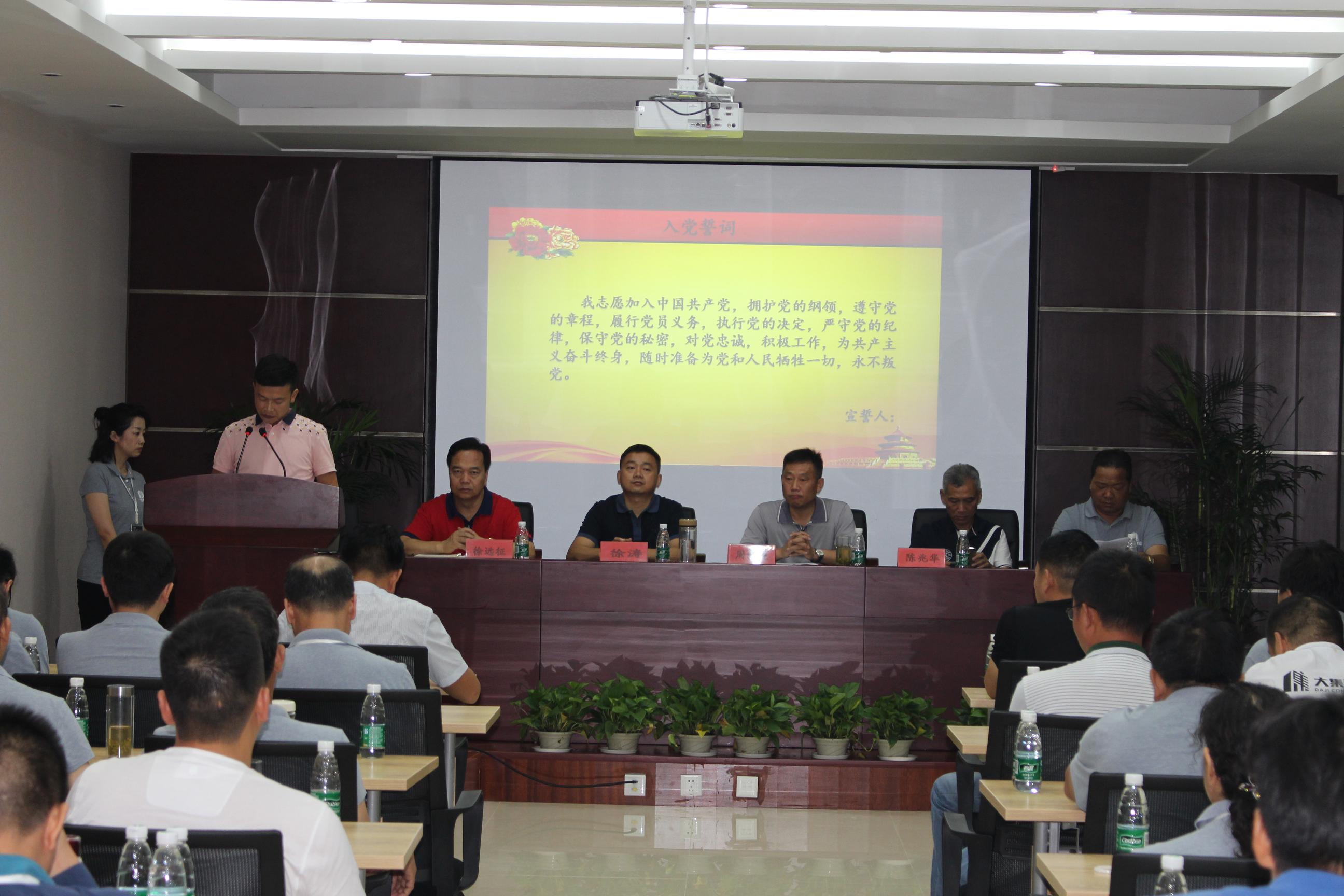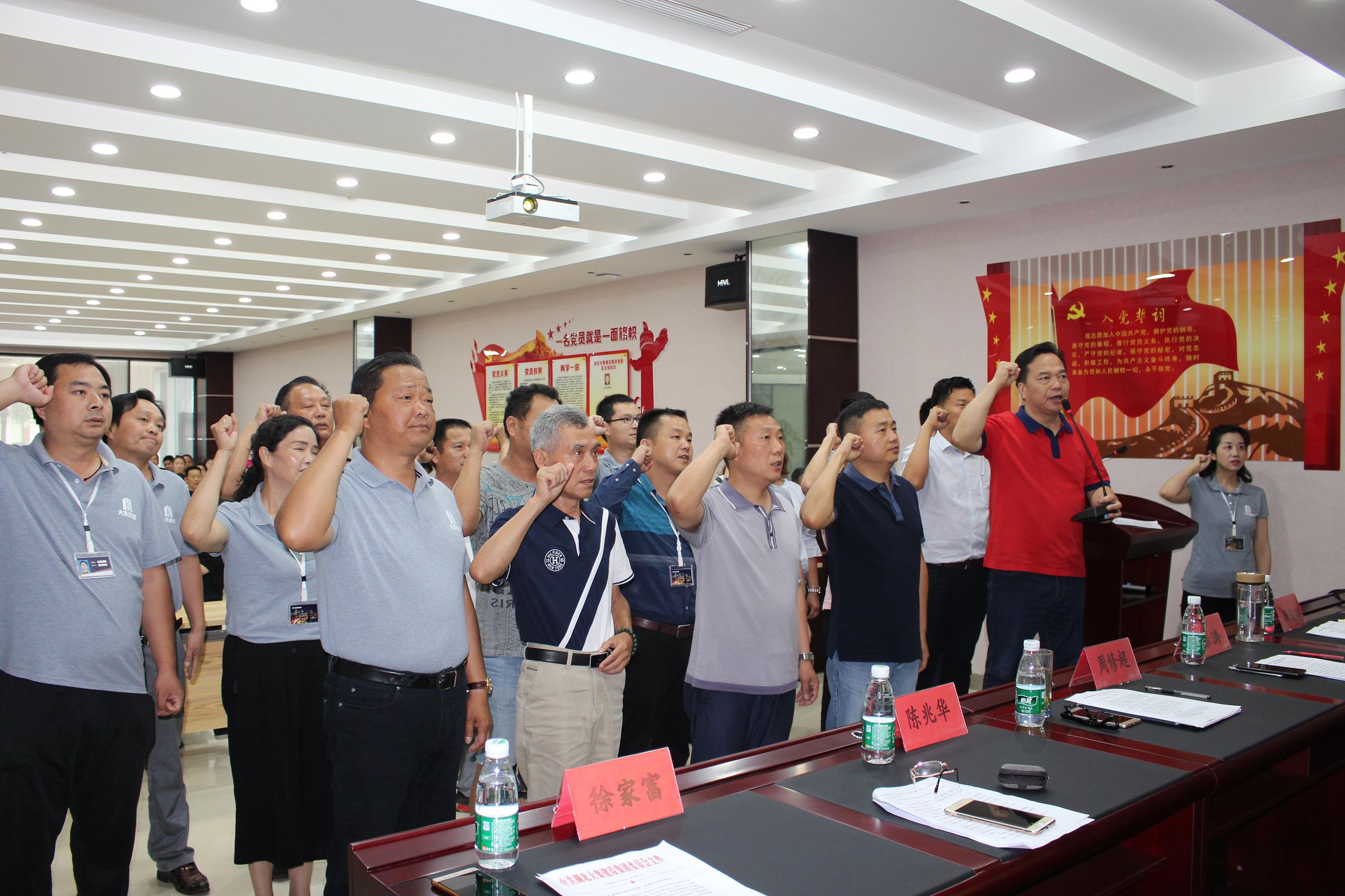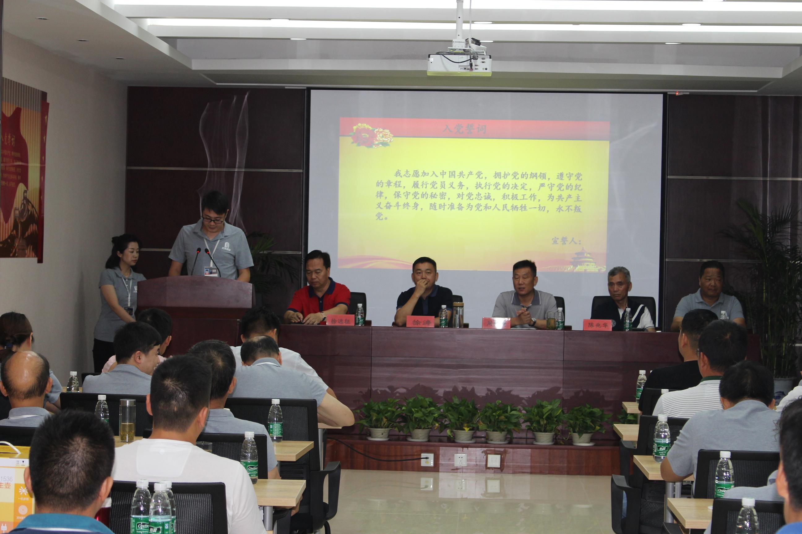 在慷慨激昂的大合唱《沒有共產(chǎn)黨就沒有新中國》中,會議拉開了序幕,熱血沸騰的歌聲結(jié)束后,由集團黨委副書記徐遠征同志帶領新黨員做入黨宣誓,老黨員重溫入黨誓詞。