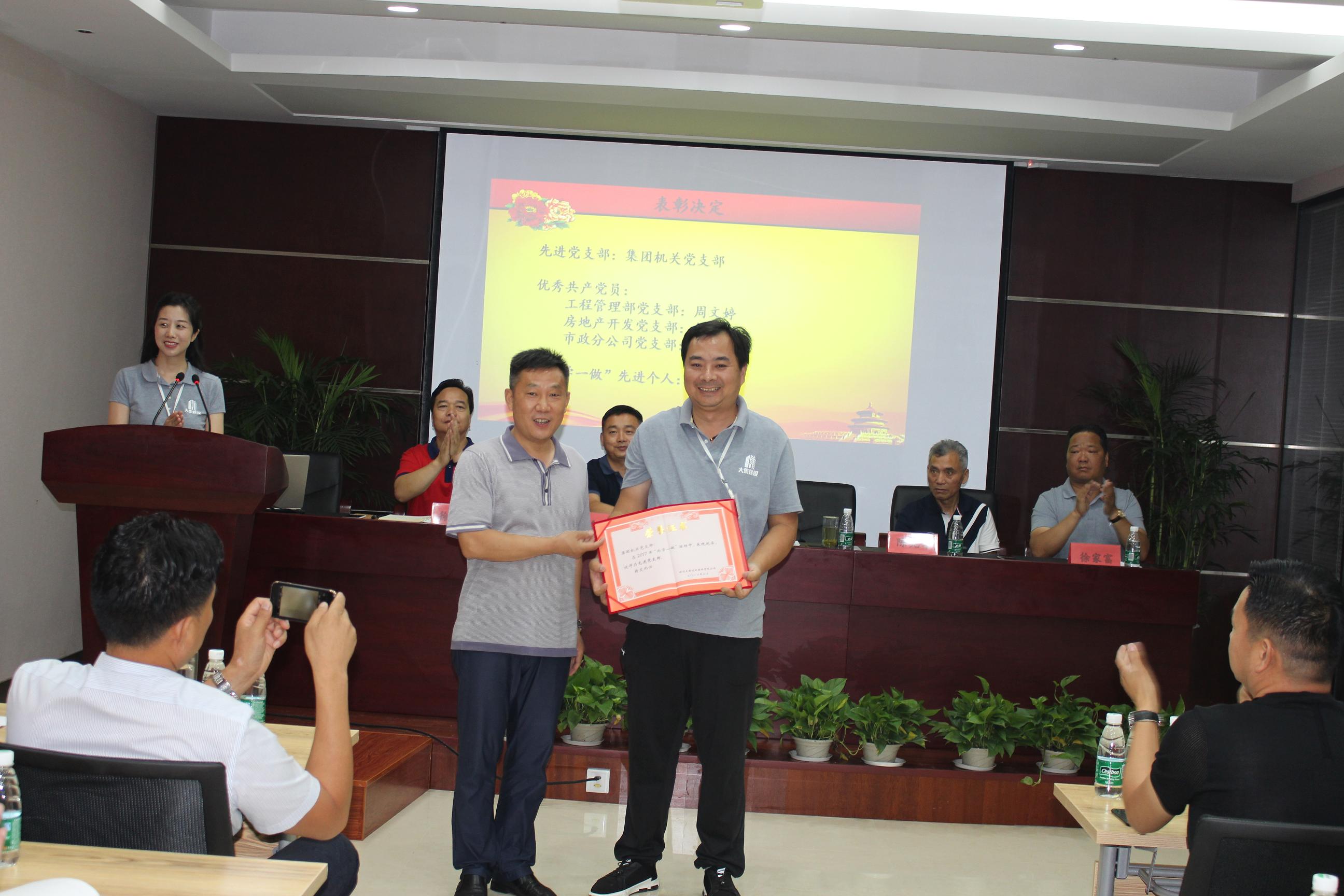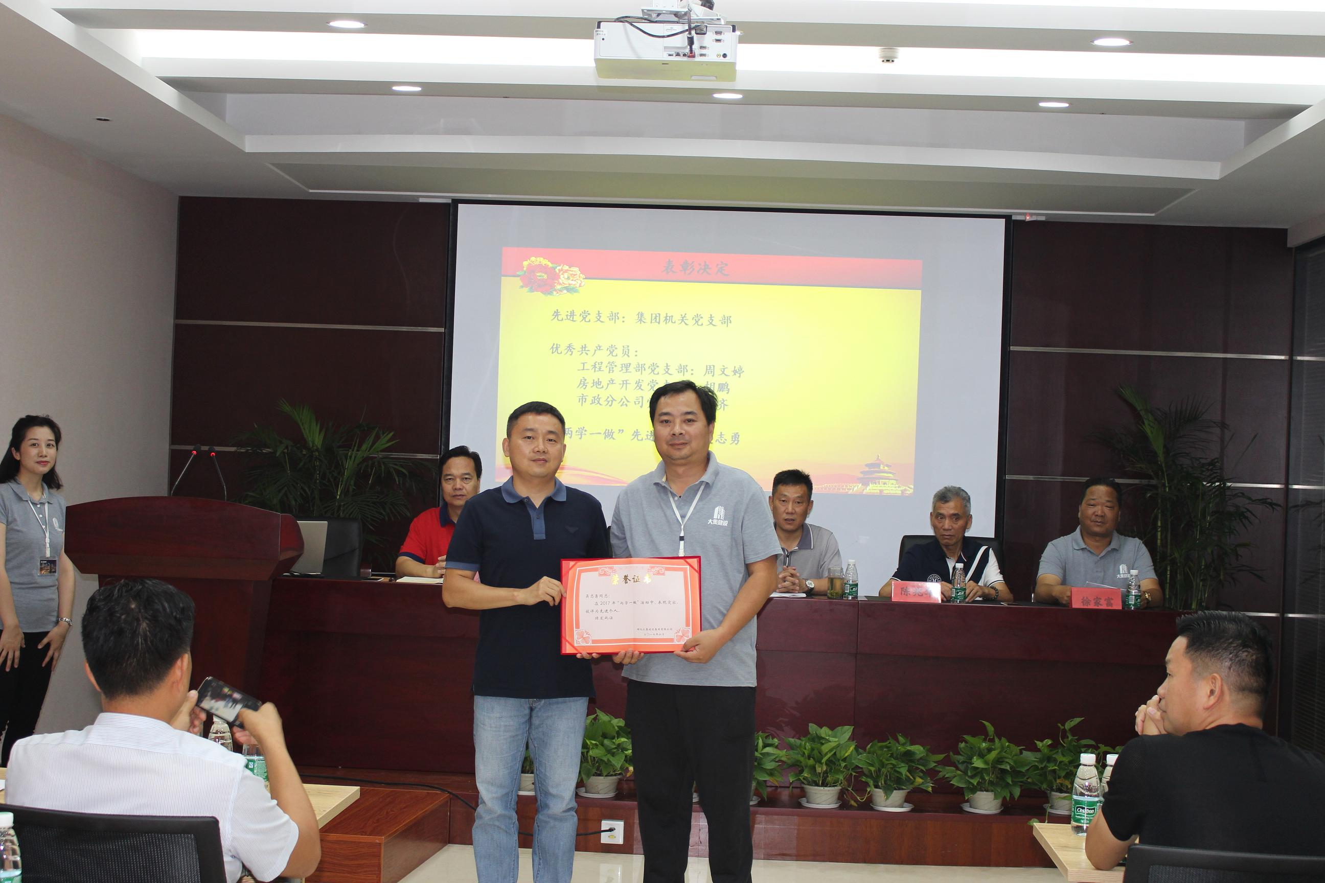 接著,由工程管理部黨支部書記徐家富同志宣讀中共湖北大集建設集團有限公司黨委《關于集團公司黨委和支部人員組成的決定》及《關于表彰先進黨支部、優(yōu)秀黨員的決定》。