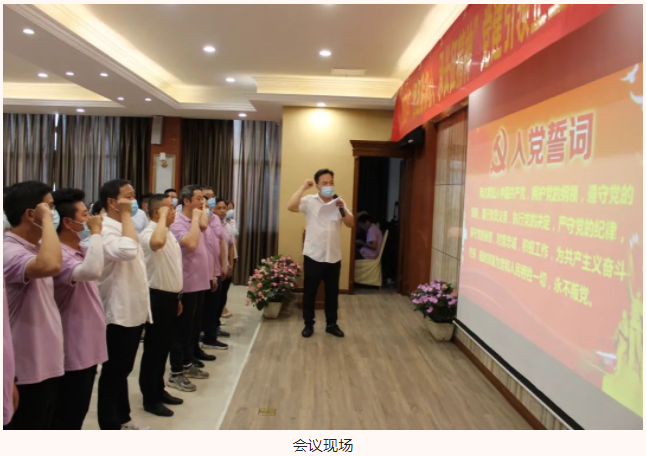 會議開始,湖北大集建設(shè)集團(tuán)黨支部書記徐遠(yuǎn)征同志帶領(lǐng)全體黨員重溫入黨誓詞。在徐遠(yuǎn)征同志領(lǐng)誓下,全體黨員舉起右拳,莊嚴(yán)宣誓,鏗鏘有力的聲音,久久響徹耳邊,共同表達(dá)了不忘初心,牢記使命,永遠(yuǎn)奮斗的堅定決心。