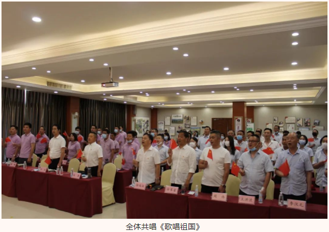 “五星紅旗迎風(fēng)飄揚,勝利歌聲多么響亮;歌唱我們親愛的祖國,從今走向繁榮富強(qiáng)……”會議最后,全體起立,共唱《歌唱祖國》,用嘹亮的歌聲表達(dá)了對黨和祖國的無限熱愛和深深祝福。