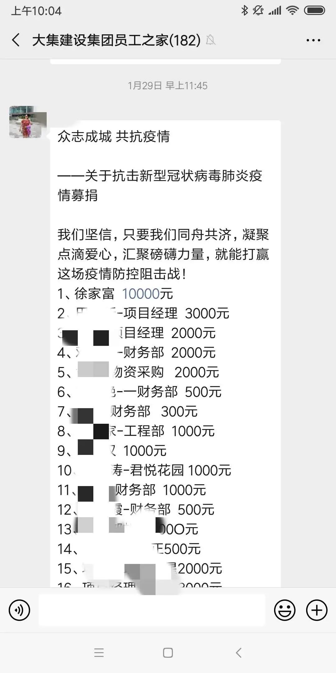 徐總親自動(dòng)員全體員工共同抗疫,并身先士卒帶頭捐款1萬元