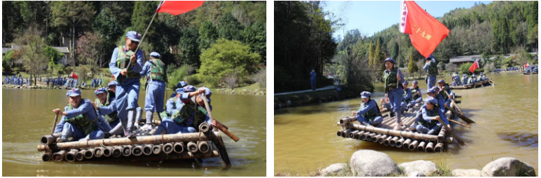 挺進領(lǐng)袖峰,在培訓教官的帶領(lǐng)下,學員們通過“重建紅軍部隊”、“搶渡大渡河”、“自做紅軍飯”等體驗教學,增強學員們團結(jié)協(xié)作、不怕吃苦、英勇頑強的精神。
